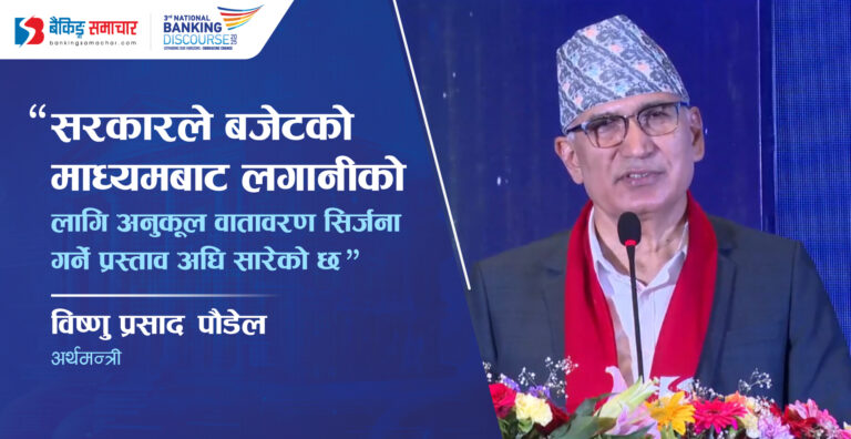 काठमाडौं – उपप्रधान एवम् अर्थमन्त्री विष्णु पौडेलले सरकारले  बजेटको माध्यमबाट लगानीको लागि अनुकूल वातावरण सिर्जना गर्ने प्रस्तावहरू अगाडि सारेको  बताएका छन् । उनले तेस्रो नेशनल बैंकिङ्ग डिस्कोर्श २०२५ लाई सम्बोधन गर्दै सो बताएका हुन् ।
