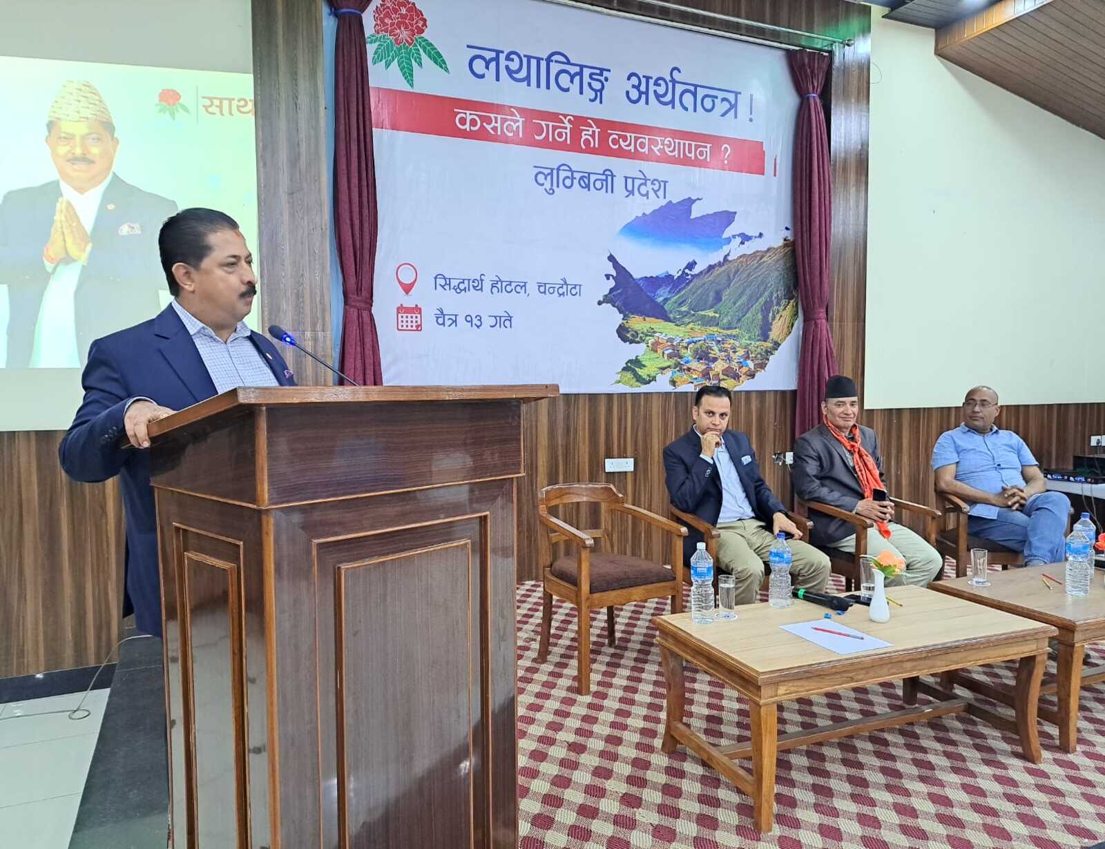 लुम्बिनी प्रदेशको कपिलवस्तु स्थित चन्द्रौटामा आयोजित ‘लथालिङ्ग अर्थतन्त्र कसले गर्ने हो व्यवस्थापन विषयक’ कार्यक्रममा उनले अहिले अर्थतन्त्र समस्यामा भएको भन्दै यसलाई सुधार गर्न सरकारले तत्काल ध्यान दिनुपर्ने बताएका हुन् ।