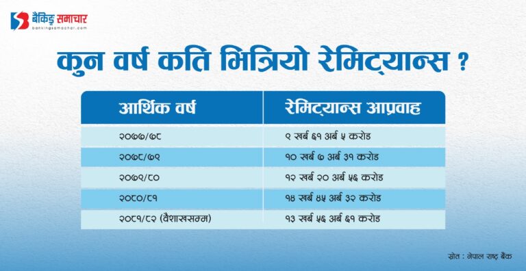 कुन वर्ष कति भित्रियो रेमिट्यान्स ?