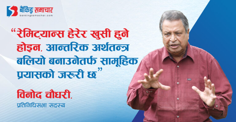 काठमाडाैं – प्रतिष्ठित उद्योगीसमेत रहेका प्रतिनिधिसभा सदस्य विनोद चौधरीले मुलुकको अर्थतन्त्र सकारात्मक लयमा गएकाले यसको निरन्तरताको आवश्यक औँल्याएका छन् । उनले विप्रेषण हेरेर खुसी हुने होइन, आन्तरिक अर्थतन्त्र बलियो बनाउनेतर्फ सामूहिक प्रयासको जरुरी रहेको बताए ।
