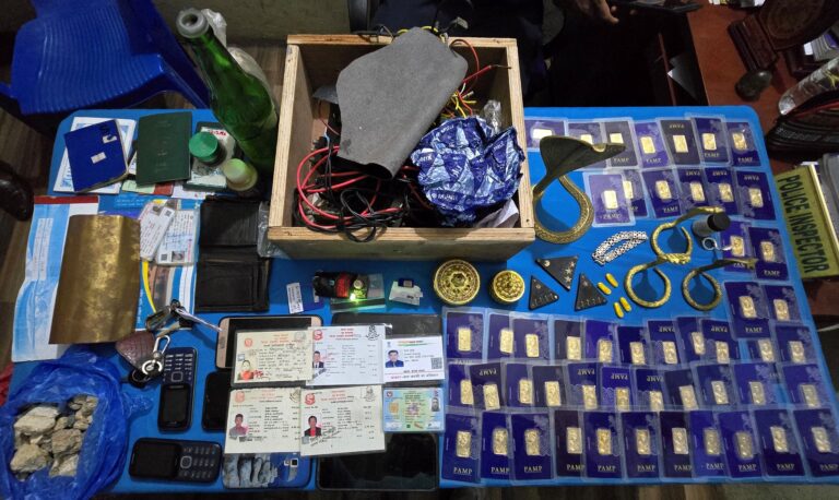 कोठा खानतलासी गर्ने क्रममा झोलाभित्र राखिएको सुनजस्तो देखिने पहेँलो धातु ५० थान बरामद भएको प्रहरीले जनाएको छ। उक्त धातु परीक्षणका लागि मकवानपुर सुनचाँदी व्यवसायी संघमा पठाउँदा तीमध्ये ४९ थान नक्कली र १ थान मात्र सक्कली सुन भएको पुष्टि भएको छ।