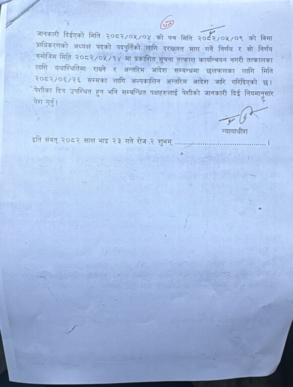 काठमाडौं – नेपाल बीमा प्राधिकरणका अध्यक्ष शरद ओझा पुनः प्राधिकरणमा फर्किएका छन् । मन्त्रिपरिषद्को निर्णयविरुद्ध सर्वोच्च अदालत गएका उनको बर्खास्तीविरुद्ध सर्वोच्च अदालतले अन्तरिम आदेश दिएसँगै उनी प्राधिकरण फर्किएका हुन् ।