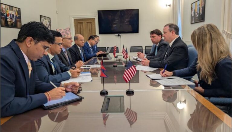 काठमाडौं – अर्थमन्त्री रामेश्वरप्रसाद खनालले अमेरिकी तथा विभिन्न दातृ निकायहरूसँग छलफल गरेका छन् । विश्व बैंक र अन्तर्राष्ट्रिय मुद्रा कोष (आइएमएफ)को वार्षिक बैठकमा भाग लिने क्रममा संयुक्त राज्य अमेरिकाको वासिङटन डिसिमा रहेका अर्थमन्त्री खनालले अमेरिकाको वाणिज्य प्रतिनिधिसँग नेपाल र संयुक्त राज्य अमेरिका बीचको आपसी व्यापार र लगानी प्रवर्द्धनका विषयमा छलफल गरेका छन् । साथै, नेपाल ट्रेड प्रिफेरेन्स प्रोग्राम (एनटिटिपी) को म्याद थप गर्न आग्रह गरे।