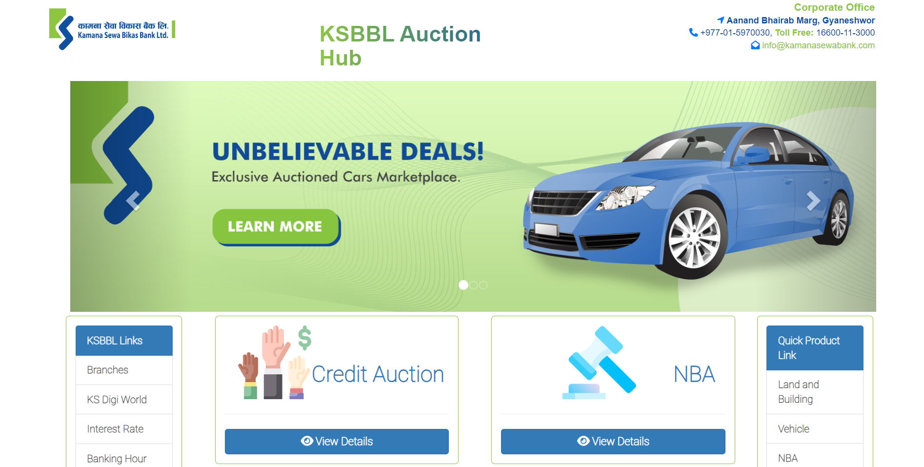 कामना सेवा विकास बैंकले बैंकिङ्ग क्षेत्रमा नै पहिलो पटक लिलाम सम्बन्धी अनलाइन प्लाटफर्म ‘KSBBL Auction Hub’ प्रयोगमा ल्याएको छ ।