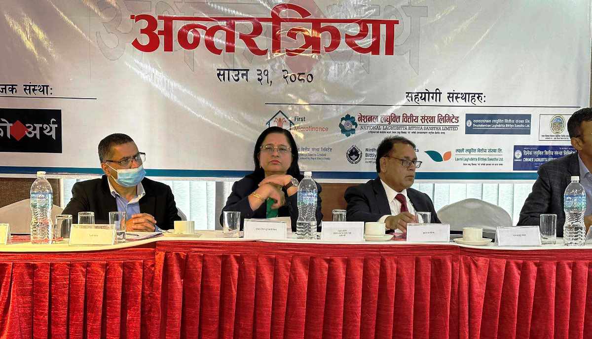 “केही लघुवित्तले गर्दा लघुवित्तको इमेज बिग्रयो । एउटै व्यत्तिलाई धेरै लघुवित्तले ऋण दिँदा पनि समस्या निम्तिएको हो,” उनले भनिन्, “तर, यसरी कारोबार गर्ने १२÷१३ प्रतिशत लघुवित्त छन् । महिला आर्थिक सशक्तीकरणका लागि लघुवित्तलाई खुकुलो छोडेका हौँ । अहिले लघुवित्तलाई राष्ट्र बैंकले सुधार गर्न केही कसेको हो ।”