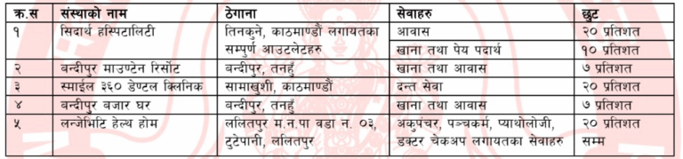 सम्झौता पश्चात महालक्ष्मी विकास बैंकका डेविट कार्ड, क्रेडिट कार्ड तथा मोबाइल बैंकिङ्ग प्रयोग गर्ने ग्राहकहरुले उक्त संस्थाहरुका विभिन्न सेवाहरुमा विशेष छुट प्राप्त गर्न सक्नेछन् । उक्त संस्थाहरु र प्राप्त गर्न सकिने छुट निम्नलिखित छन्ः