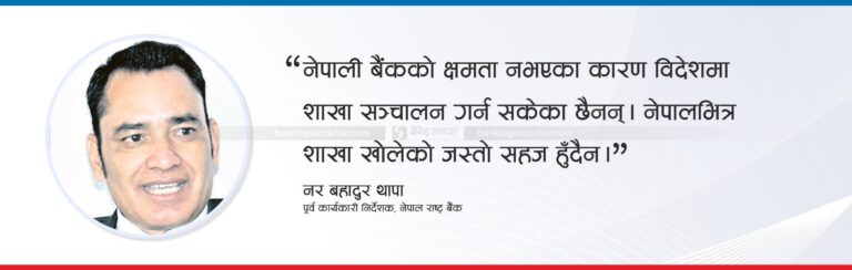 नेपाल राष्ट्र बैंकका पूर्व कार्यकारी निर्देशक नर बहादुर थापाले नेपाली बैंकको क्षमता नभएका कारण विदेशमा शाखा सञ्चालन गर्न नसकेको बताए। नेपालमा मुख्य कार्यालय राखेर विदेशमा शाखा सञ्चालनका लागी बैंकहरू सक्षम नभएको उनको बुझाई छ।