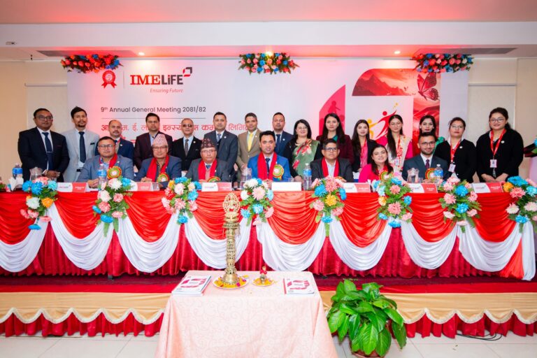 काठमाडौं – आइएमई लाइफ इन्स्योरेन्स कम्पनीको नवौँ वार्षिक साधारणसभा सम्पन्न भएको छ। सभा काठमाडौंको धुम्बाराहीस्थित दियो महलमा सम्पन्न भएको हो। सभाले गत आर्थिक वर्षका लागि प्रस्तावित हाल कायम चुक्तापुँजी ५ अर्ब रुपैयाँको कुल १०.५२६३२ प्रतिशतले हुन आउने ५२ करोड ६३ लाख १५ हजार ७८९ रुपैयाँबराबरको नगद लाभांश (करसहित) अनुमोदन गरेको छ।