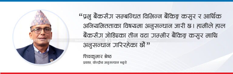 काठमाडौं – केन्द्रीय अनुसन्धान ब्युरो (सीआईबी) ले प्रभु बैंकसँग सम्बन्धित विभिन्न बैंकिङ्ग कसुर र आर्थिक अनियमितताका विषयमा अनुसन्धान अघि बढाएको छ। सीआईबीले हाल बैंकसँग जोडिएका तीन वटा गम्भीर बैंकिङ्ग कसुर माथि अनुसन्धान गरिरहेको जनाएको छ।