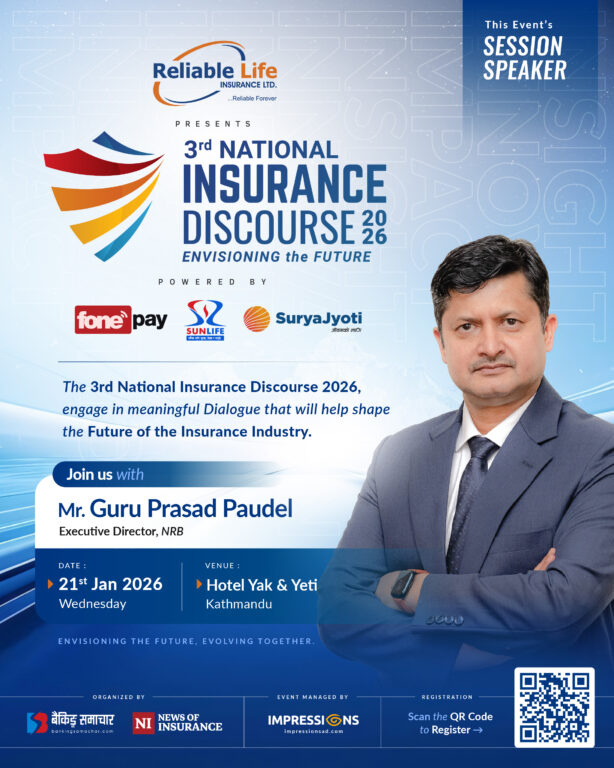 काठमाडौं – तेस्रो इन्स्योरेन्स डिस्कोर्श २०२६ को पहिलो सत्रमा वक्ताका रुपमा नेपाल राष्ट्र बैंकका कार्यकारी निर्देशक गुरु प्रसाद पौडेल सहभागी हुने भएका छन्। बैंकिङ्ग समाचार र न्युज अफ इन्स्योरेन्सको संयुक्त आयोजनामा हुन लागेको इन्स्योरेन्स डिस्कोर्शको ‘कहिले खुल्छ बैंकासुरेन्सः नीति, नियामक र बजारको वास्तविकता’ विषयक सत्रमा पौडेल सहभागी हुने भएका हुन्।