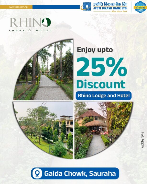 ज्योति विकास बैंकका ग्राहकहरुलाई ‘राइनो लज एण्ड होटल’ मा विशेष छुट