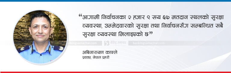 त्यस्तै, नेपाल प्रहरीका कर्मचारी तथा नियुक्त हुँदै गरेका निर्वाचन प्रहरी परिचालनको व्यवस्था मिलाइसकेको नेपाल प्रहरीका प्रवक्ता प्रहरी नायब महानिरीक्षक अबिनारायण काफ्लेले जानकारी दिए। आगामी निर्वाचन शान्तिपूर्ण ढंगले सम्पन्न गर्न प्रहरीले जनशक्ति र स्रोतसाधनको व्यवस्थापन गरिरहेको उनको भनाइ छ। उनले भने,‘आगामी निर्वाचनका २ हजार ९ सय ६७ मतदान स्थलको सुरक्षा व्यवस्था, उम्मेदवारको सुरक्षा तथा निर्वाचनसँग सम्बन्धित सबै सुरक्षा व्यवस्था मिलाइएको छ।’