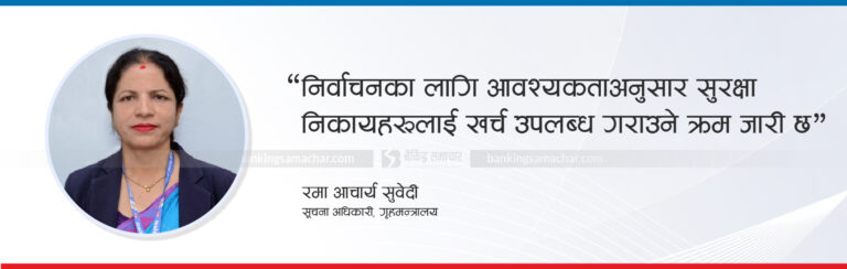 साथै, अर्थमन्त्रालयले गृहमन्त्रालयलाई छुट्याएको १० अर्ब ३९ करोड रुपैयाँबाट मन्त्रालयले निर्वाचन सुरक्षासम्बन्धी काम सुरु गरिसकेको छ। यसक्रममा निर्वाचनका लागि आवश्यकताअनुसार सुरक्षा निकायहरूलाई खर्च उपलब्ध गराइरहेको गृहमन्त्रालयकी सूचना अधिकारी रमा आचार्य सुवेदीले बताइन्।