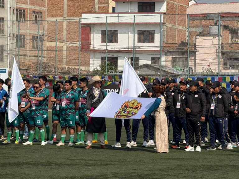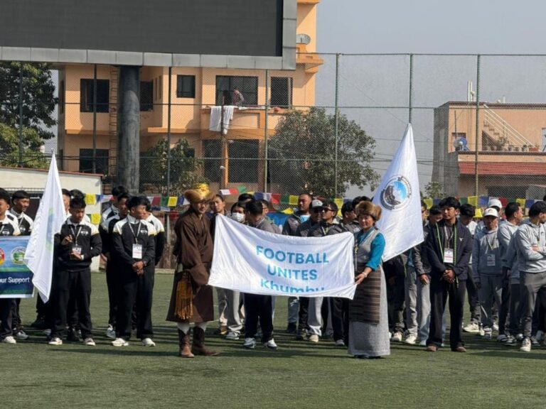 काठमाडौं – शेर्पा समुदायको सबैभन्दा प्रतिष्ठित तथा लोकप्रिय फुटबल प्रतियोगिता खुम्बु ल्होसार कप–२०२६ को १५औँ संस्करण शनिबारदेखि औपचारिक रूपमा सुरु भएको छ। प्रतियोगिता ललितपुरस्थित सातदोबाटोको एन्फा फुटबल मैदानमा आयोजना भइरहेको छ। शेर्पा समुदायको नयाँ वर्ष ल्होसारको अवसर पारेर आयोजना हुँदै आएको यो प्रतियोगिता समुदायभित्र दीर्घकालीन खेलकुद परम्पराका रूपमा स्थापित भइसकेको छ। यस वर्षको प्रतियोगिता महेन्द्र ज्योति एक्स–स्टुडेन्ट फोरम, फाराकको आयोजनामा भइरहेको छ।
