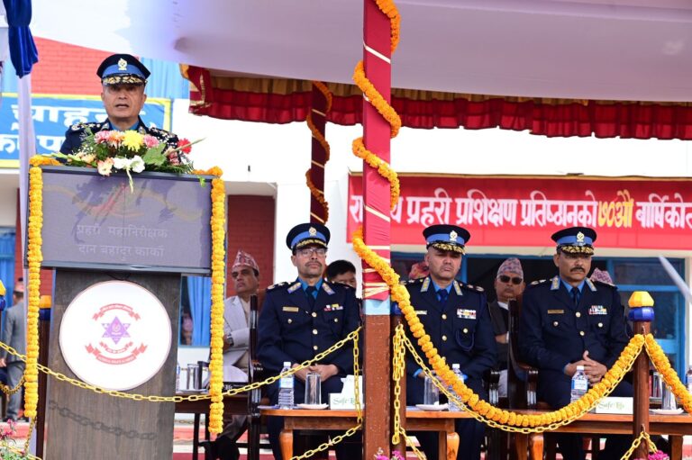 काठमाडौं– प्रहरी महानिरीक्षक दानबहादुर कार्कीले दक्ष प्रहरी जनशक्ति उत्पादनमा प्रहरी प्रशिक्षण प्रतिष्ठानको महत्वपूर्ण भूमिका रहेको बताएका छन्। राष्ट्रिय प्रहरी प्रशिक्षण प्रतिष्ठानको ७०औँ वार्षिकोत्सवका अवसरमा आज यहाँ आयोजित कार्यक्रममा उनले दक्ष प्रहरी जनशक्ति उत्पादनमा प्रतिष्ठानले खेलेको भूमिका सराहनीय छ भने।