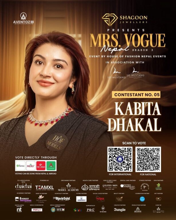 उनी दैनिक रूपमा बिहान योगा, जुम्बा र जिममा सक्रिय रहँदै शारीरिक तथा मानसिक सन्तुलनलाई प्राथमिकता दिने गर्छिन्। पारिवारिक दायित्व, पेसागत व्यस्तता र सामाजिक सेवाबीच सन्तुलन कायम गर्दै उनले देखाएको आत्मविश्वास धेरै महिलाका लागि प्रेरणाको स्रोत बन्न सक्ने देखिन्छ। मिसेस भाेग नेपालको यो यात्राले सशक्तीकरण केवल शब्दमा सीमित नभई निरन्तर प्रयास, सिकाइ र सामाजिक जिम्मेवारीको अभ्यासबाट सम्भव हुने सन्देश दिएको छ। यस प्रतियोगिताको फाइनल इभेन्ट यही फागुन १२ गते ललितपुरस्थित म्याजेस्टिक ग्राण्डमा हुँदैछ। प्रतियोगीलाई इसेवा एपको ‘भोटिङ एण्ड इभेन्ट्स’ मेनुमा गई कन्टेस्टेन्ट नम्बर ५ छनोट गरेर वा मोबाइल बैंकिङ्ग एपमार्फत प्रतियोगीको क्युआर कोड स्क्यान गरी भोट गर्न सकिने आयोजकले जनाएको छ।