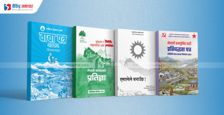 काठमाडौं – आगामी फागुन २१ गते हुने प्रतिनिधि सभा सदस्य निर्वाचन नजिकिएसँगै राजनीतिक दल आफ्नो घोषणापत्र सार्वजनिक गर्नतर्फ अघि बढेका छन्। राजनीतिक दलले घोषणापत्र सार्वजनिक गर्दै स्वास्थ्यका विषयलाई विशेष प्राथमिकतामा राखेर स्वास्थ्य बीमालाई थप सुदृढ बनाउने बताएका हुन्।