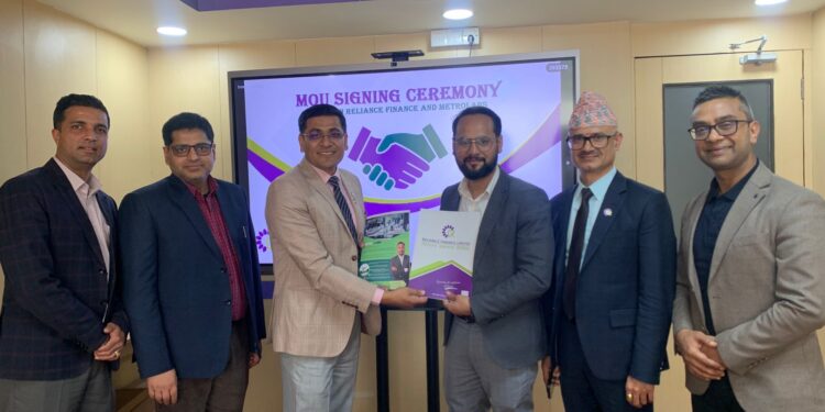 सम्झौतापत्रमा रिलायन्स फाइनान्सका प्रमुख कार्यकारी अधिकृत डा. बुद्धि मल्ल र मेट्रो ल्याबका प्रबन्ध निर्देशक नितिशंकर देवकोटाले हस्ताक्षर गरेका हुन्।