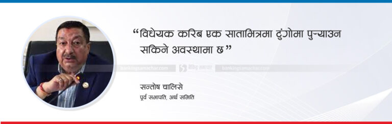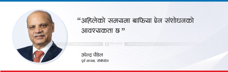 ‘अन्य क्षेत्रको विकास चाहने हो भने बैंकिङ्ग क्षेत्रको पहिले विकास गर्नुपर्ने हुन्छ,’ उनले बैंकिङ्ग समाचारसँग भने, ‘बैंकिङ्ग क्षेत्रप्रतिको आकर्षण घटिरहेको छ। लगानी बढाउन आकर्षण पनि बढाउन आवश्यक छ।’ उनले बैंक तथा वित्तीय संस्थाका लागि नेपाल राष्ट्र बैंकको नियमन पर्याप्त रहेको बताउँदै नियम समयअनुसार परिवर्तन पनि भइरहेको बताए।