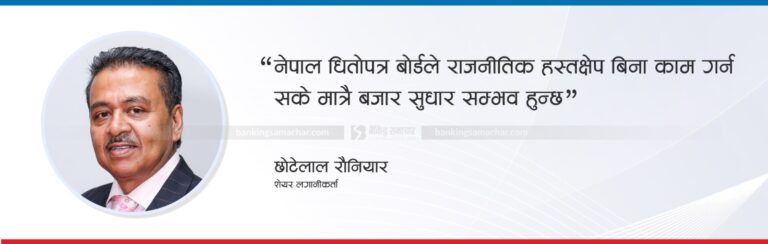 शेयर लगानीकर्ता छोटेलाल रौनियारका अनुसार पुँजी बजार सुधारको सुरुवात नियामक निकायको स्वतन्त्रताबाट हुनुपर्छ। उनले नेपाल धितोपत्र बोर्ड (सेवोन) लाई पूर्ण स्वायत्तता दिनुपर्ने बताए। उनकाअनुसार बोर्डले राजनीतिक हस्तक्षेप बिना काम गर्न सके मात्रै बजार सुधार सम्भव हुन्छ।