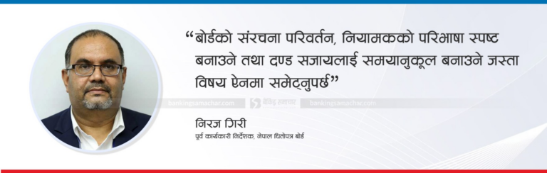 नेपाल धितोपत्र बोर्डका पूर्व कार्यकारी निर्देशक निरज गिरीका अनुसार पुँजी बजार सुधारका लागि धितोपत्र ऐनमा व्यापक संशोधन आवश्यक छ। उनले बोर्डको संरचना परिवर्तन, नियामकको परिभाषा स्पष्ट बनाउने तथा दण्ड सजायलाई समयानुकूल बनाउने जस्ता विषय ऐनमा समेट्नुपर्ने बताए।