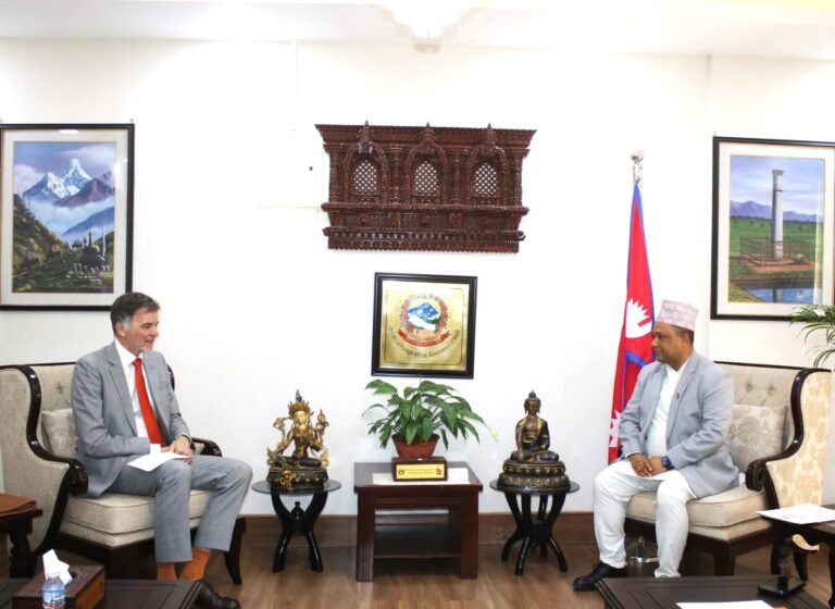 काठमाडौं – परराष्ट्र मन्त्री शिशिर खनालसँग नेपालका लागि जर्मनीका राजदूत उडो यूजेन भोल्जले शिष्टाचार भेटवार्ता गरेका छन्। मन्त्रालयमा आज भएको भेटमा उनीहरुबीच नेपाल–जर्मनी सम्बन्धका विविध विषयहरूमा छलफल भएको मन्त्रालयले जनाएको छ।