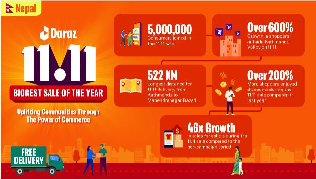 गत कार्तिक २५ गते सार्वजनिक भएको दराज ११.११ सेलमा लाखौं ग्राहकहरुले करोडौंको छुट पाएका छन् । वाणिज्यद्वारा नेपाली समुदायहरुलाई उत्थान गर्ने उद्देश्यले सुरु भएको यो वर्षको ११.११ सेलमा ५० लाख ग्राहकहरुले दराजबाट सामान खरिद गरेका छन् ।