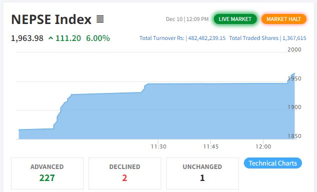 बजार खुलेको ५ मिनेटमै नेप्से परिसूचक ४ प्रतिशतले बढेर १९२६ बिन्दुमा पुगेपछि २० मिनेटको लागि सर्किट ब्रेक लागेको थियो। २० मिनेटपछि बजार खुलेको २ मिनेटमै सेयर बजारमा दोस्रो सर्किट ब्रेक लागेको थियो।
