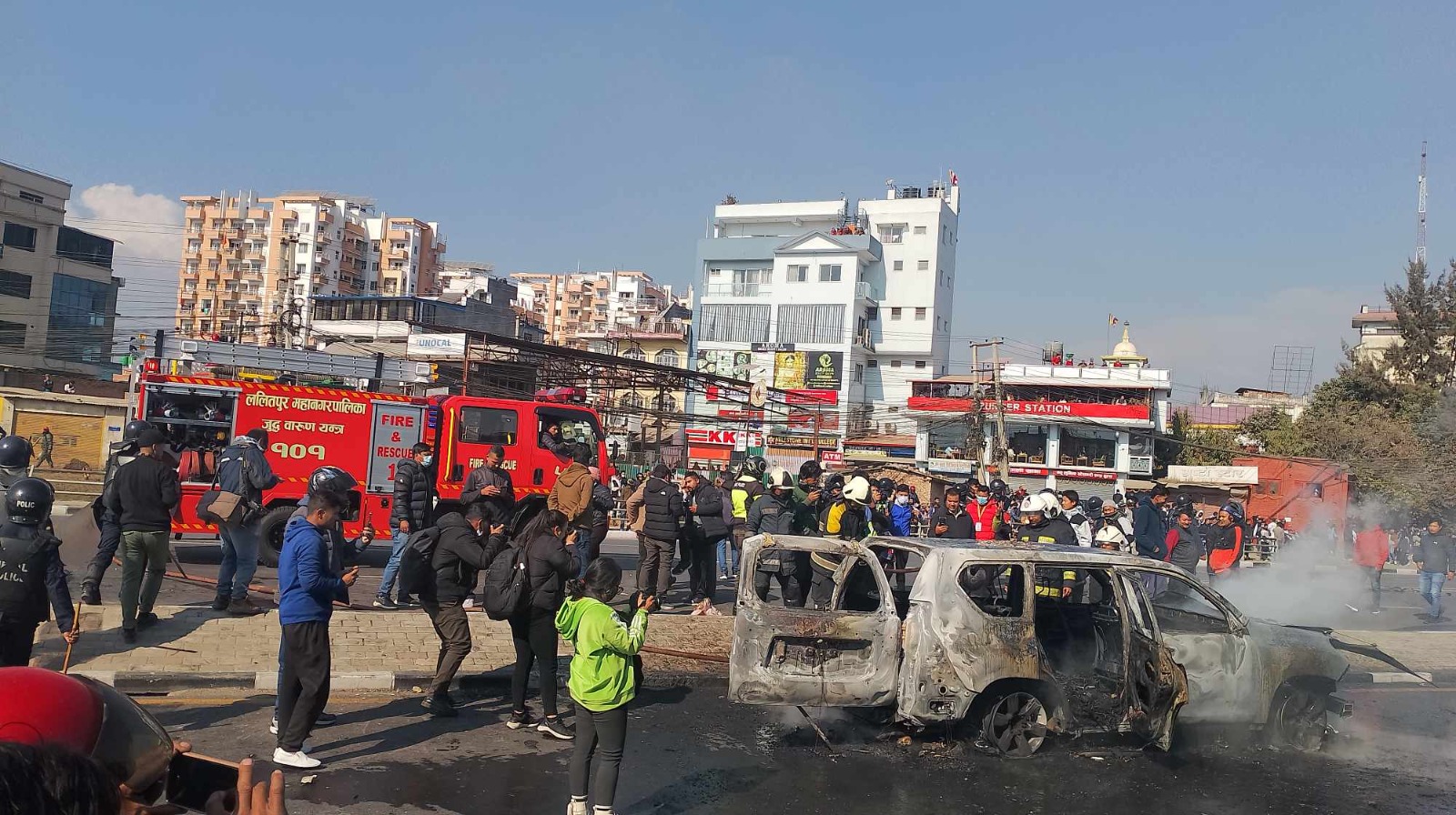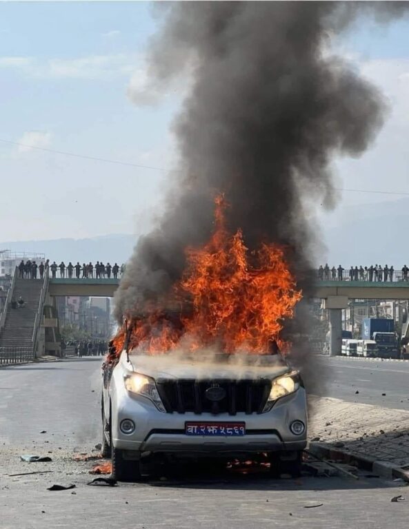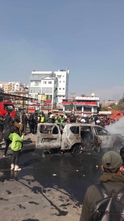 शुक्रबार दिउँसाे मन्त्री ज्वालाले प्रयाेग गरेकाे बा २ झ ५८६१ नम्बरको सरकारी गाडीमा आगजनी गरिएकाे हाे । आन्दोलनकारीले मन्त्री ज्वाला, चालक र पीएसओलाई गाडीबाट बाहिर निकालेर गाडीमा आगो लगाएका थिए ।