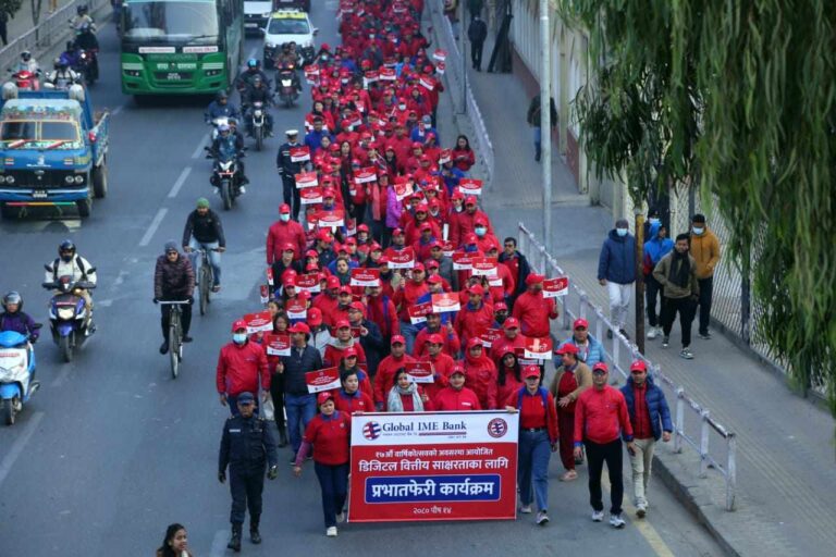 काठमाडौं-ग्लोबल आइएमई बैंक लिमिटेडले आफ्नो १७औँ वार्षिकोत्सवको अवसरमा शनिबार देशव्यापी प्रभातफेरि कार्यक्रमको आयोजना गरेको छ। जनमानसमा वित्तीय साक्षरता तथा बैंकिङ्ग सचेतना अभिवृद्धिका लागि आफ्नो संस्थागत सामाजिक उत्तरदायित्वअन्तर्गत बैंकले सातवटै प्रदेशका मुख्यमुख्य सहरहरुमा प्रभातफेरि कार्यक्रम गरेको हो।
