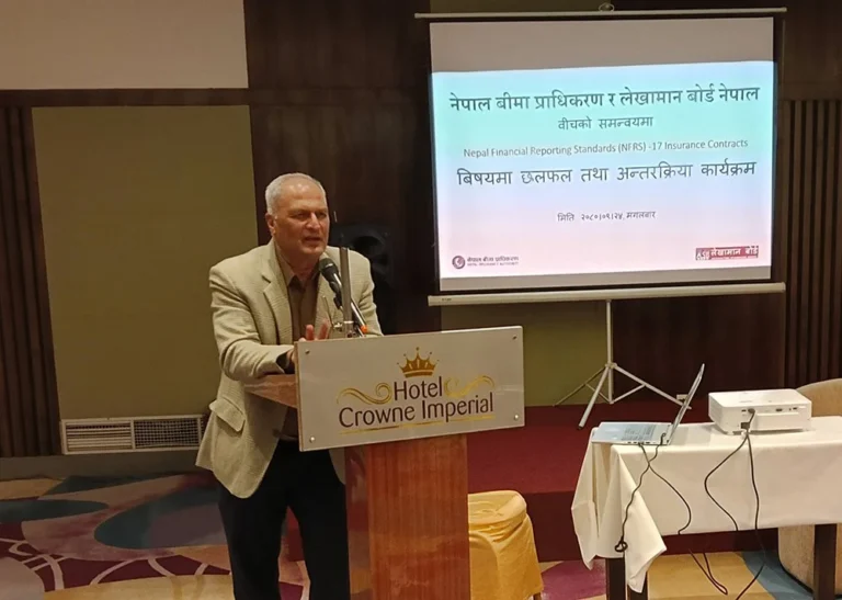 नेपाल वित्तीय प्रतिवेदन मान – १७ इन्स्योरेन्स कन्ट्रयाक्ट्स सम्बन्धी अन्तरक्रियामा अध्यक्ष सिलवालले भने, “सम्बद्ध नियामक निकायहरू आ–आफ्नो जिम्मेवारी यकिन गरी अगाडि बढेमा यस वर्ष नसकिए पनि अर्को वर्ष पूर्णरूपमा एनएफआरएस – १७ लागू गर्न सकिन्छ, त्यसका लागि वातावरण बनाउनुपर्छ, प्राधिकरण र बीमा कम्पनीहरूको क्षमता अभिवृद्धि गर्नुपर्छ ।”