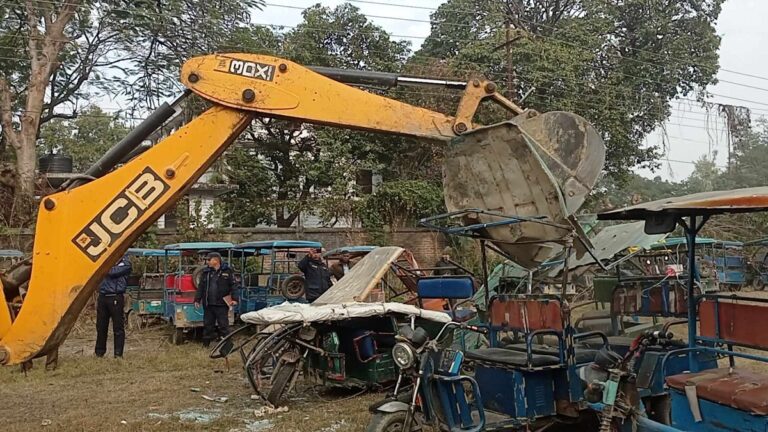 गत मङ्सिर १९ गतेदेखि अवैध रुपमा सञ्चालित ई–रिक्सा नियन्त्रण अभियान थालेको उपमहानगरपालिकाले मङ्गलवार पाँच ई–रिक्सा नष्ट गरेको छ ।आवश्यक कागजात नभएका ती ई–रिक्सा प्राविधिक जाँच गरी स्काभेटरले तोडफोड गरी नष्ट गरिएको हो ।