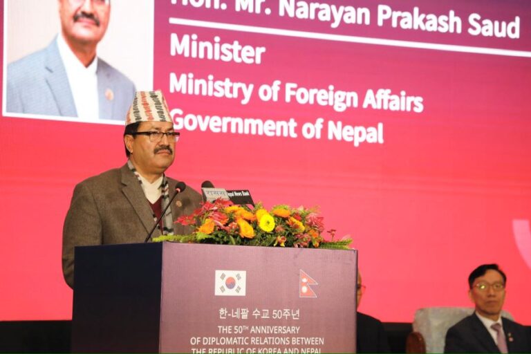 काठमाडौं– परराष्ट्रमन्त्री नारायणप्रकाश साउदले नेपालमा आगामी वैशाखमा हुने लगानी शिखर सम्मेलनमा कोरियाली लगानीकर्ता र उद्यमीहरूको ठूलो सङ्ख्यालाई स्वागत गर्न आफूहरु तत्पर रहेको बताएका छन् ।
