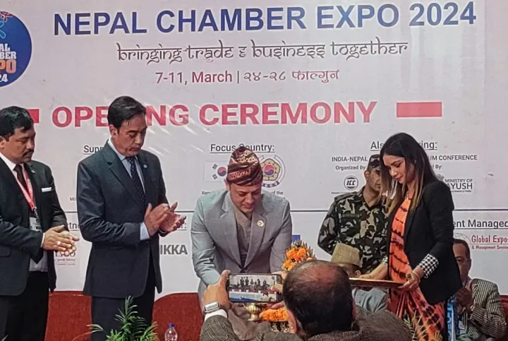 काठमाडौं– नेपाल चेम्बर अफ कमर्सको आयोजनामा ‘नेपाल चेम्बर एक्स्पो २०२४’ बिहीबारदेखि सुरु भएको छ । काठमाडौंको भृकुटीमण्डपस्थित प्रदर्शनी कक्षमा सुरु भएको चेम्बर एक्स्पोको श्रम, रोजगार तथा सामाजिक सुरक्षामन्त्री डोलप्रसाद अर्यालले उद्घाटन गरेका छन् । सो एक्स्पो क्रममा श्रममन्त्री अर्यालले मुलुकमा रोजगारी सिर्जना गर्ने निजी क्षेत्रले नै गर्नुपर्ने बताए । उनले मुलुकको वर्तमान अर्थतन्त्र निजी क्षेत्रले नै चलायमान बनाउनुपर्ने बताए ।