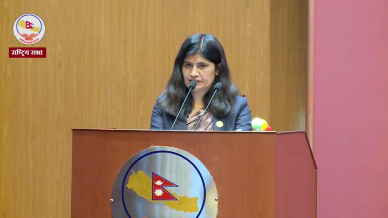 उनले भनिन् – ‘रासायनिक मलको कारखाना खोल्ने कुरा उल्लेख गर्नुभएको छ । किसानहरुले उत्पादनलाई बढाउने हो भने मल, बीउको लागि सरकारले सोच्नुपर्ने विषय हो । म जोड दिएर भन्न चाहन्छु प्राङ्गारिक मललाई बढी महत्व दिउँ । प्राङ्गारिक मलको कारखाना खोल्ने कुरालाई सरकारले बढी महत्व दिन आवश्यक छ । त्यसले माटोको गुणस्तरलाई नबिर्गान, मानव स्वास्थ्यलाई नबिगार्न प्राङ्गारिक मलमा जोड दिनुपर्छ । उत्पादनलाई बढाउनको निम्ति सिँचाई सुविधाको विषयमा सरकारले ध्यान दिनुपर्छ । हामीकहाँ भएका ६ हजार वटा नदीहरुलाई प्रयोग गरेर सिँचाइको व्यवस्था सरकारले गर्नुपर्छ । अनि मात्रै कृषि उत्पादकत्व बढाउन सकिन्छ । हामीलाई चाहिने खाद्यान्न उत्पादन गर्न सरकारले त्यस विषयमा ध्यान पु¥याउनु पर्दछ ।’