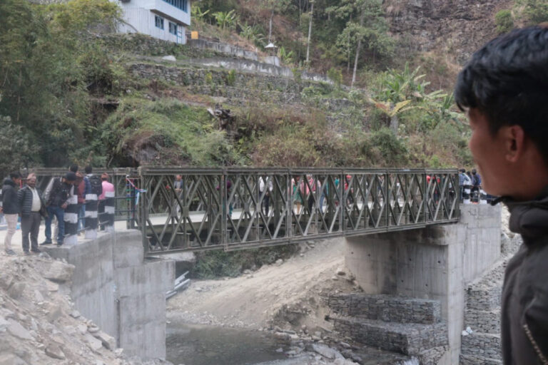 सोलुखुम्बु– सोलुखुम्बुको माप्य दुधकोशी गाउँपालिका वडा नम्बर २ मा ३ करोड २८ लाखमा मोटेरबुल पुल निर्माण सम्पन्न भएको छ । आइतबार एक कार्यक्रमबीच १८ मिटर लामो मोटरेबल पुल उद्घाटन भएको हो । पुलको उद्घाटन प्रतिनिधि सभा सदस्य मानवीर राईले गरे । कार्यक्रममा पूर्वविदेशमन्त्री बुद्धिकुमार राजभण्डारीको पनि उपस्थिति रहेको थियो ।