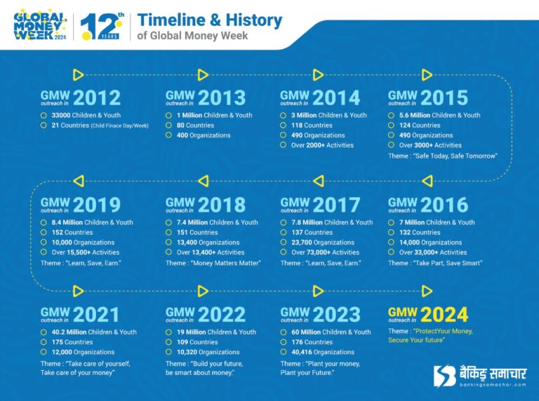 नेपाल राष्ट्र बैंकले आजबाट ‘ग्लोबल मनी वीक २०२४’ मनाउँदैछ। राष्ट्र बैंकले ‘सुरुवात युवाबाटै, बलियो आधार बचतबाटै’ भन्ने मुल नाराका साथ मनी वीक मनाउन लागेको हो। यो कार्यक्रम एक सातासम्म चल्ने छ। उक्त कार्यक्रम ओइसिडिको सहकार्यमा राष्ट्र बैंकले पनि प्रत्येक वर्ष गर्ने गरेको छ।