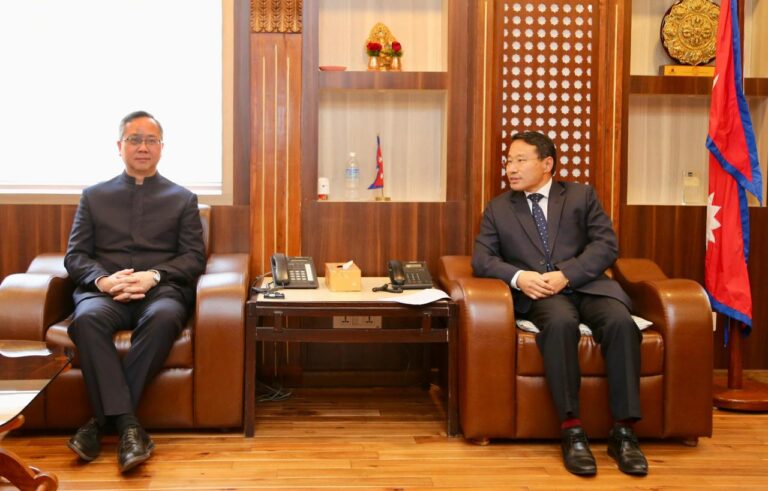 काठमाडौं– नेपालका लागि चिनियाँ राजदूत छन सोङले अर्थमन्त्री वर्षमान पुन अनन्तसँग मंगलबार शिष्टाचार भेट गरेका छन् । सिंहदरबारस्थित मन्त्रालयमा भएको भेटमा राजदूत छनले दोश्रोपटक अर्थमन्त्रीको जिम्मेवारी सम्हालेकामा मन्त्री पुनलाई बधाई दिँदै कार्यकाल सफलताको कामना गरे । भेटमा मन्त्री पुनले चिनियाँ सहयोग तथा लगानीमा निर्माणाधीन विकास आयोजनाका कामलाई तीव्रता दिन आग्रह गर्दै प्रक्रियामा रहेका आयोजना अघि बढ्ने विश्वास व्यक्त गरे ।