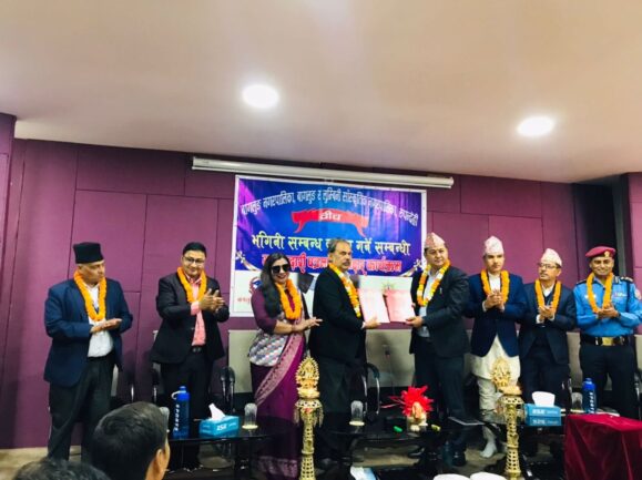 बागलुङ– आन्त्रिक पर्यटन प्रवर्द्धन गर्न बागलुङ नगरपालिका र रुपन्देहीको लुम्बिनी सांस्कृतिक नगरपालिका बीच भगिनी सम्बन्ध कायम भएको छ । बुधबार दुई स्थानीय तहका प्रमुखहरूले भगिनी सम्बन्ध स्थापना गर्ने सम्बन्धी समझदारीपत्रमा हस्ताक्षर गरेका छन् ।