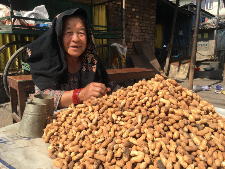 लमजुङ घर भएकी धनकुमारी घले ६४ वर्षको पुगिन् । छोराछोरीले राम्रै कमाउँछन् । खान लाउन दुःख छैन । तर, उहाँ‘ काम नगरी बस्न हुन्न । छोराले गाडीको ग्यारेज खोलेका छन् । त्यही ज्यारेजको छेउमा उनी नाङ्लोभरी बादम राखेर बेच्छिन् । हरियो मकैको याममा मकै राख्छिन् । यति मात्रै होइन, उनी एक्लै हिडेर कालीमाटी पुग्छिन् समान किन्न । औषधिको नाममा अहिलेसम्म सिटामोलबाहेक अरु केही खानु परेको छैन धनमायालाई ।