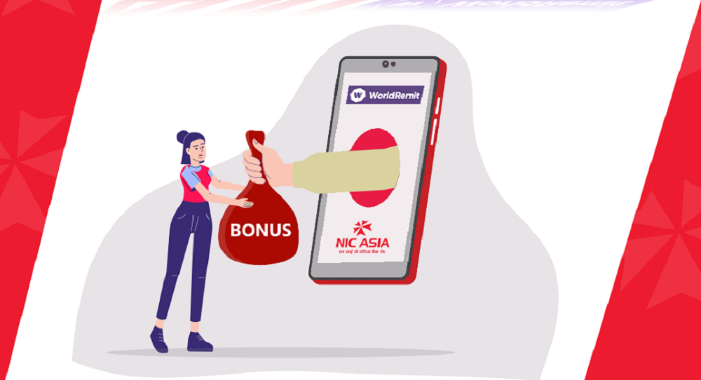 एनआईसी एशिया बैंकले दशैंको अवसरमा अन्तर्राष्ट्रिय डिजिटल रेमिट्यान्स कम्पनी वर्ल्डरेमिटसँग मिलेर बाेनस अफर ल्याएकाे छ । यस अफर अन्तर्गत ग्राहकहरुले वर्ल्डरेमिट मार्फत एनआईसी एशिया बैंककाे खातामा रकम पठाउँदा ४०० बोनस रकम बाेनस पाउने छन् ।