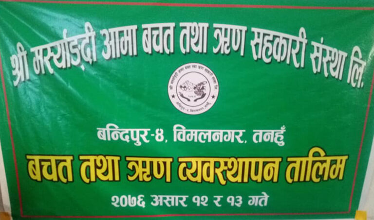 करिब तीन वर्षसम्म समूहले रु एक, दुई, दश, बीस, पचास र रु एक सयका दरले क्रमिक रुपमा बचत गर्दै आएको थियो। विसं २०५४ सालमा समूहले सहकारी सञ्चालन गर्ने निर्णय अनुरुप मस्र्याङ्दी आमा बचत तथा ऋण सहकारी संस्था स्थापना गरेका थिए।