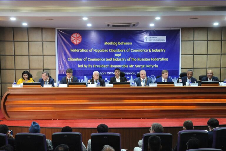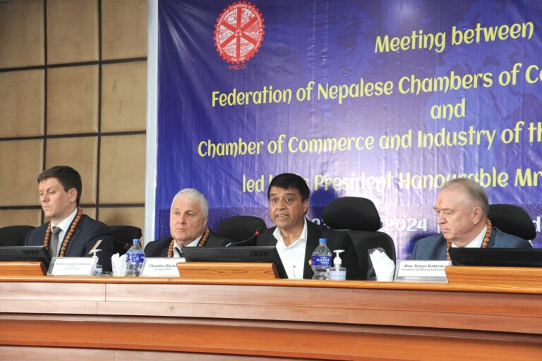 काठमाडौं– नेपाल उद्योग वाणिज्य महासंघका अध्यक्ष चन्द्रप्रसाद ढकालले नेपाल र रुसबीचको द्विपक्षीय सम्बन्धलाई सदुपयोग गरी व्यापार तथा लगानी सहकार्यलाई सुदृढ गर्न महत्वपूर्ण रहेको बताएको छ । नेपाल उद्योग वाणिज्य महासंघ र रुसी संघको उद्योग वाणिज्य संघबीच मंगलबार नेपाल उद्योग वाणिज्य महासंघको सचिवालयमा भएको भेटवार्तामा ढकालले सो कुरा बताएका हुन् ।