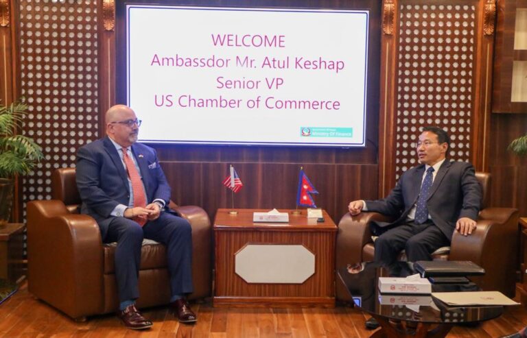 काठमाडौं– अमेरिकन व्यवसायीहरुको नेतृत्वदायी संस्था यूएस चेम्बर अफ कमर्सका वरिष्ठ उपाध्यक्ष अतुल कश्यपले अर्थमन्त्री वर्षमान पुन अनन्तसँग भेटेका छन् ।१६ र १७ वैशाखमा हुने तेश्रो अन्तर्राष्ट्रिय लगानी सम्मेलनमा सहभागी हुन निजी क्षेत्रका प्रतिनिधिहरुको नेतृत्व गरेर आएका कश्पयले शुक्रबार सिंहदरबारस्थित मन्त्रालयमा मन्त्री पुनसँग भेटेका हुन् ।