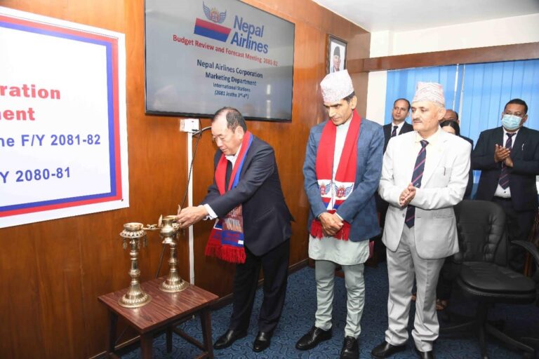 काठमाडौं – संस्कृति, पर्यटन तथा नागरिक उड्डयनमन्त्री हितबहादुर तामाङले नेपाल वायुसेवा निगमको केन्द्रिय कार्यालय अनुगमन गर्नुका साथै वार्षिक बजेट बैठककाे उद्धघाटन गरेका छन्। बिहीबार मन्त्री तामाङले २०८०/८१ को समिक्षा र आगामी आर्थिक वर्ष २०८१/८२ को वार्षिक योजना तथा बजेट प्रक्षेपण बैठककाे उद्धघाटन गरेका हुन्। बैठक भाेलिसम्म चल्नेछ। मन्त्री तामाङले निगमको निरीक्षण तथा बैठककाे उद्धघाटन प्रश्चात् निगमकाे हित हुने कार्यमा सधैं आफुले सहयोग गर्ने प्रतिबद्धता जनाएका छन्।