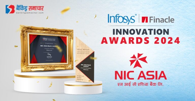 डिजिटल बैंकिङ्ग सेवामा उत्कृष्ट हुँदै एनआईसी एशिया बैंकले पायाे ‘इन्फोसिस फिनाकल इनोभेसन अवार्ड्स २०२४’
