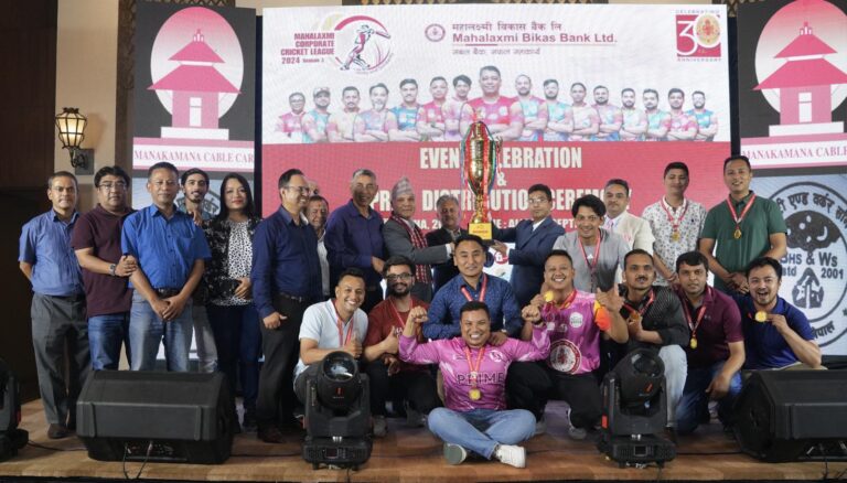 काठमाडाैं – महालक्ष्मी विकास बैंकको ३० औँ वार्षिकोत्सवको अवसरमा आयोजित महालक्ष्मी कर्पोरेट क्रिकेट लिग २०२४– संस्करण ३ का विजेताहरूलाई पुरस्कार वितरण कार्यक्रम सम्पन्न भएको छ। यही जेठ २२ गते मंगलबार देखि २४ गते बिहीबार (तिन दिन) सम्म इमाडोल स्थित बलपार्क स्र्पोट्स इभेन्ट्स एण्ड एकेडेमीमा सम्पन्न उक्त प्रतियोगिताको उपाधि प्राइम कमर्सियल बैंक लिमिटेडले जित्न सफल भएको छ भने आइ.सि.एफ.सि.फाइनान्स लिमिटेडले द्वितीय स्थान हासिल गर्न सफल भएको छ। उक्त प्रतियोगितामा विभिन्न बैंक तथा वित्तीय संस्थाका १६ टिमले सहभागिता जनाएका थिए।