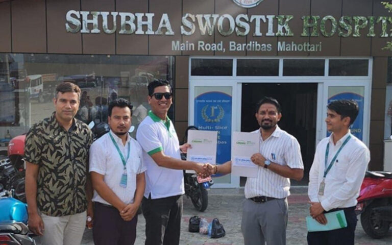 काठमाडौं – सिटिजन्स बैंक इन्टरनेसनल लिमिटेड र बर्दिबास, महोत्तरी स्थित शुभ स्वस्तिक हस्पिटलबीच सिटिजन्स बैंकका ग्राहकहरूलाई विशेष छुट दिने समझदारीपत्रमा हस्ताक्षर भएको छ । सो समझदारीपत्रमा हस्ताक्षर पश्चात् सिटिजन्स बैंकका कार्डबाहक र मोबाइल बैंकिङ्ग ग्राहकहरूले शुभ स्वस्तिक हस्पिटलका सेवाहरुमा १५५ सम्मको आकर्षक छुट पाउनेछन्। यस किसिमको सहकार्यबाट बैंकका ग्राहकहरु लाभान्वित हुनुका साथै नगद कारोबारबाट डिजिटल कारोबार तर्फ उत्प्रेरित हुने विश्वास बैंकले लिएको छ ।