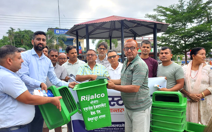 काठमाडौं – एक्सेल डेभलपमेण्ट बैंकले आफ्नो सामाजिक उत्तरदायित्वन्तर्गत फोहोर व्यवस्थापनमा सहयोग पुर्याउन डस्टबिन वितरण गरेको छ। गौरादह नगरपालिकाको बैगुनधुरा बजारभित्रका विभिन्न स्थानहरूमा ७ थान डस्टबिन वितरण गरिएको बैंकले जनाएको छ ।