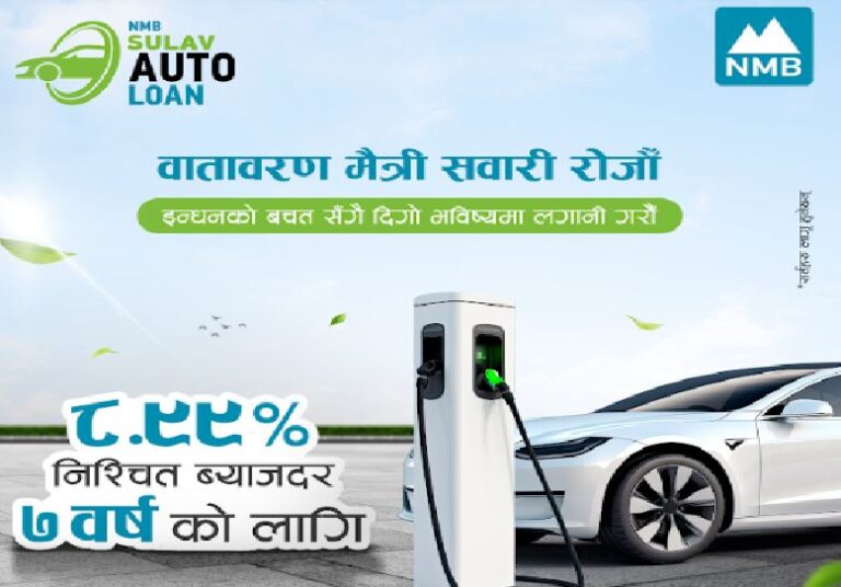 काठमाडौं – एनएमबि बैंकले विद्युतीय सवारीसाधनहरू ७ वर्षको अवधिका लागि मात्र ८.९९ प्रतिशत निश्चित ब्याजदरमा उपलब्ध गराएको छ। नेपालमा विद्युतीय सवारी साधनको प्रयोगलाई प्रवर्द्धन गर्ने र दिगो भविष्यलाई समर्थन गर्ने उद्देश्यका साथ बैंकले विधुतिय गाडी सेग्मेन्टमा कम ब्याजदरमै लोन उपलब्ध गरेको हो।